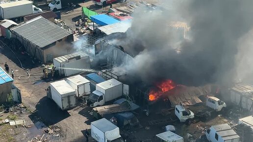 Пожар, горит ангар, автомобили, Пушкинский район, Ленсоветовский