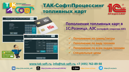 Пополнение топливных карт на рабочем месте оператора АЗС в "1С:Розница.АЗС" от ТАК-Софт