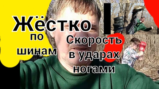 Такой скорости ударов ногами можно добиться ,только тренируясь до пота. Парни бьют по шинам.