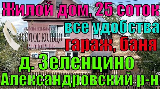 Жилой дом (все удобства) с гаражем, баней на участке 25 соток в д.Зеленцино, Александровский район