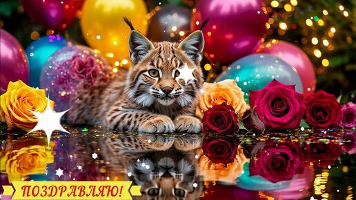 С Днём Рождения! Поздравление Открытка Видео с дикими кошками