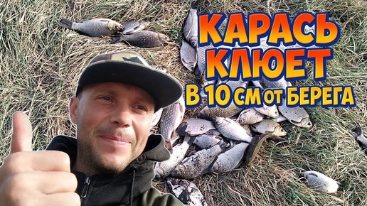 Первый раз такое вижу! Карась клюет в 10 см от берега на 5 см глубины!