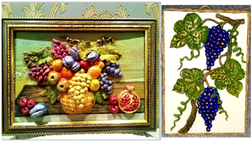2 Картины - натюрморты из соленого теста и массы для лепки. Поделки своими руками.
