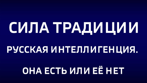 Сила традиции. "Русская интеллигенция. Она есть или её нет"