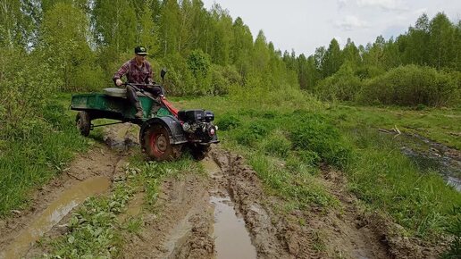 МОТОБЛОК АГРОС + ШИНЫ GRUBERG. ЕДЕМ В ЛЕС.