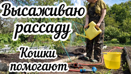 Высаживаю переросшую рассаду 🌱 Кошки помогают удобрять, рыхлить и полоть 🐈⬛😅