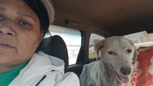 Собачка, забранная от магазина, едет в приют Ананду. Вторая собачка не агрессивная, но опасается подходить к людям. её заберут чуть позже.