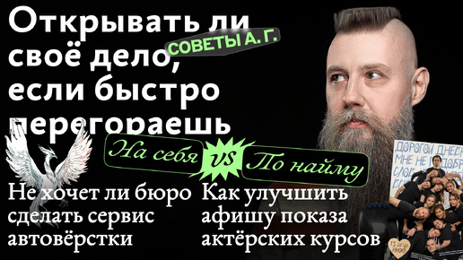 Советы А. Г. Сервис автовёрстки, актёрская афиша и открывать ли своё дело, если быстро перегораешь