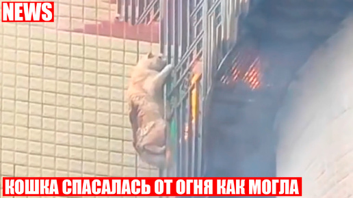 Кошка ожидала приезда пожарных держась за решетку