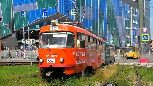 Трамвай Екатеринбурга Tatra T3SU СМЕ борт. №557/559 маршрут 15 следует по улице Московская