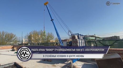 Работа Крана "Пионер" грузоподъёмностью 1500 кг с электроповоротом в стеснённых условиях в центре Москвы
