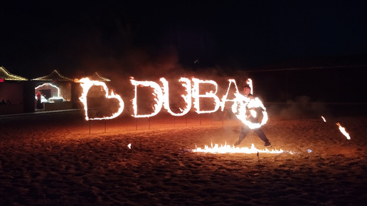 Огненное шоу на экскурсии джип сафари ОАЭ.
