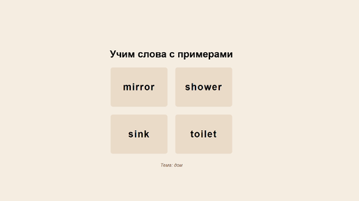 mirror, shower, sink, toilet - тема Дом - Учить английские слова с примерами и упражнениями