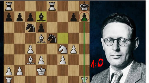 Михаил Ботвинник против Найдорфа в красивой партии 1954 года (Амстердам, 1-0) - покажу вам как это доигрывается до мата в английском начале