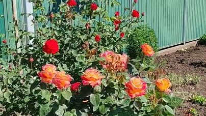 Розарии на улочках пос. Южный. Роза Восточный экспресс и другие. Краснодар, 19 мая 2025 года.