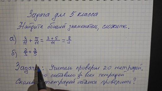 Это должен знать каждый родитель, как выполнить сложение дробных чисел и резадачу для пятого класса