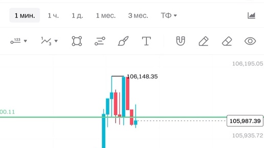Минутный график Биткоина, дорога на отметку 144.000 долларов за 1 биткоин