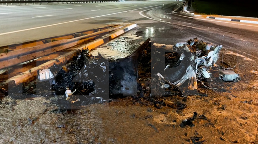 Дорогой спорткар взорвался на трассе после удара об отбойник в Подмосковье