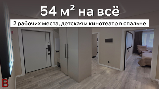 Идеальный ремонт на 54 м²: как уместить 2 рабочих места, детскую и домашний кинотеатр