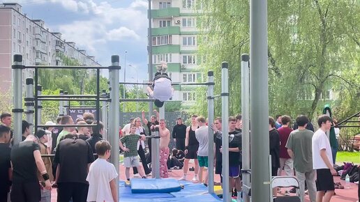 Соревнования по воркауту во дворе! #воркаут #турник #соревнования #сильныеребята #спортсмены #сальто #мэттсима