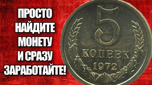5 Копеек 1972 года стоимость 4000 рублей. Просто найдите эту монету СССР и заработайте прямо сейчас