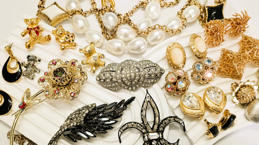 183. Антикварная брошь-дуэт, флёр-де-лис, Sarah Coventry, мишки "Тедди" и другие находки, продолжение распаковки