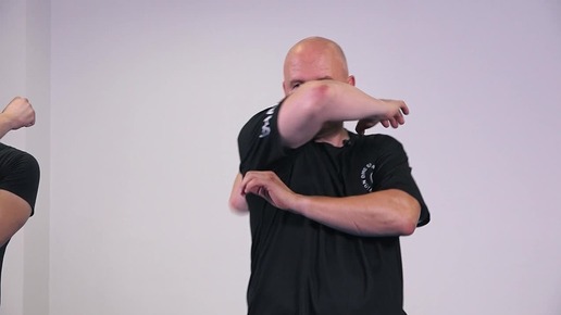 Защита от захвата за одежду на груди или отталкивания с применением ударов локтями