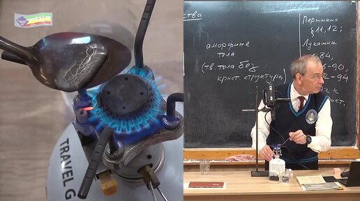 Демонстрация плавление твердых кристаллических и аморфных тел.
