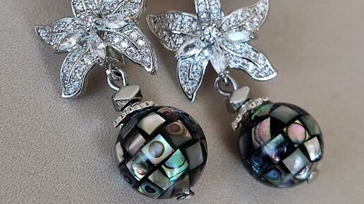 Серьги с гелиотисом. Швензы инкрустированы фианитами и кристаллами. Длина сережек 3.5 см