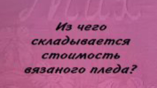 В видео приведён примерный расчёт стоимости пледа. Исходя из стоимости часа работы каждого из вас, этот расчёт более наглядный и показательный. Вязание - это так же время/труд. Это надо понимать!