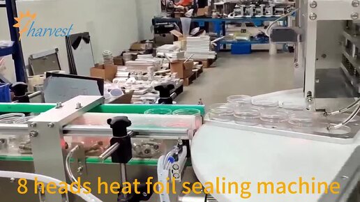 Автоматическая машина для запечатывания фольгой с 8 головками, машина для запечатывания банок горячей пленкой для контейнеров