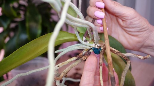 Цветение забирает корни орхидеи. Системно сбрасывает корни. Устала. Странная взаимосвязь.