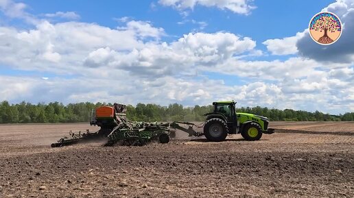 Гибридный трактор Zoomlion DV3354 работает с посевным комплексом