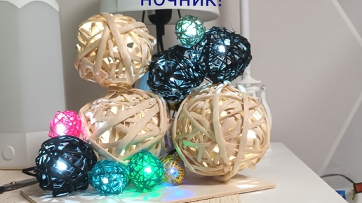 Делаем самодельный ночник из шаров из дерева