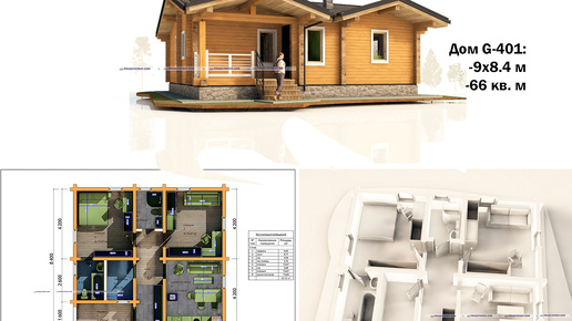 Проект одноэтажного дома из бруса профилированного 70 кв. м