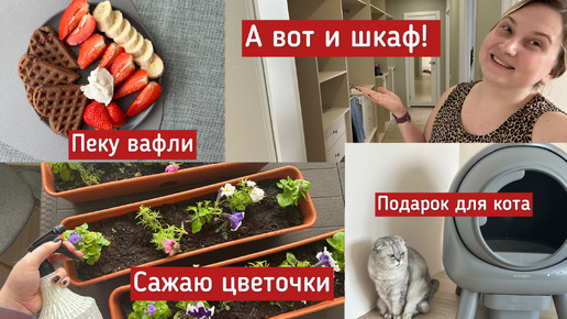 УРА! Начали собирать шкаф. Подарок для кота. Пеку вафли и сажаю цветочки