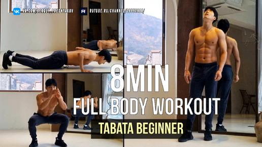 Тренировка всего тела дома для начинающих 8 минут Табата (похудение на животе) Full Body Workout