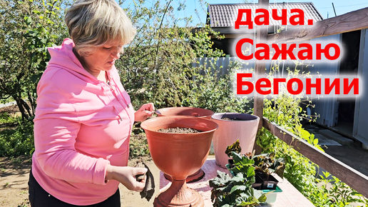 Дача.Посадила Бегонии.Сильный ветер ломает помидоры.Спасаю клубнику.Май 2025