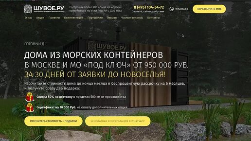 Готовый сайт по строительству домов из контейнеров, который вызывает доверие