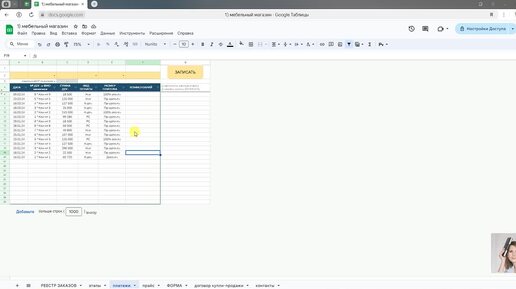 1.2. Учет платежей одним списком в Google (гугл) таблице