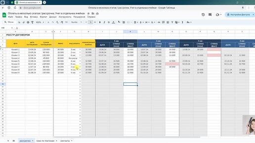 4. Учет платежей при рассрочке в Google (гугл) таблице