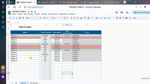 5. Список задач для сотрудников с разделением в разные файлы в Google (гугл) таблице