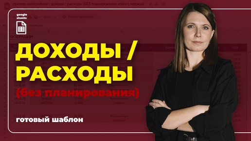 18. ШАБЛОН - доходы и расходы (БЕЗ планирования нового месяца) в Google (гугл) таблице