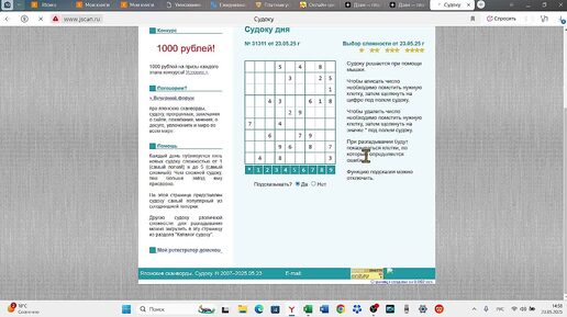 Судоку дня (5*) от 23.05.2025 из сайта jscan.ru