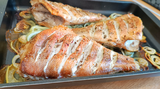 ЗАПЕЧЕННЫЙ МОРСКОЙ ОКУНЬ со средиземноморскими травами на луковой подушке