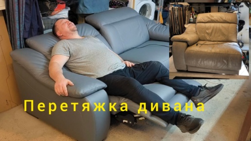 Перетяжка сложного кожаного дивана с механизмом реклайнер. Перетяжка дивана экокожей, кожзамом.