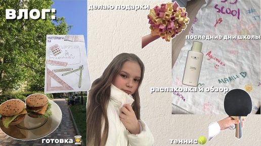 влог:последние дни школы🏫,обзор и распаковка косметики🧴🛍,теннис🎾,делаю подарок на др🎁,готовлю бургеры🍔