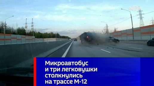 Микроавтобус и три легковушки столкнулись на трассе М-12