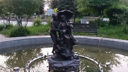 Фонтаны в городском парке. Наша прогулка с собакой Элис