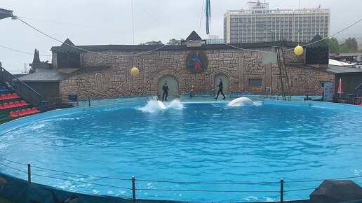 Запасаемся попкорном, присаживаемся. Смотрим представление в дельфинарии. Будет очень интересно дельфины, морские котики.